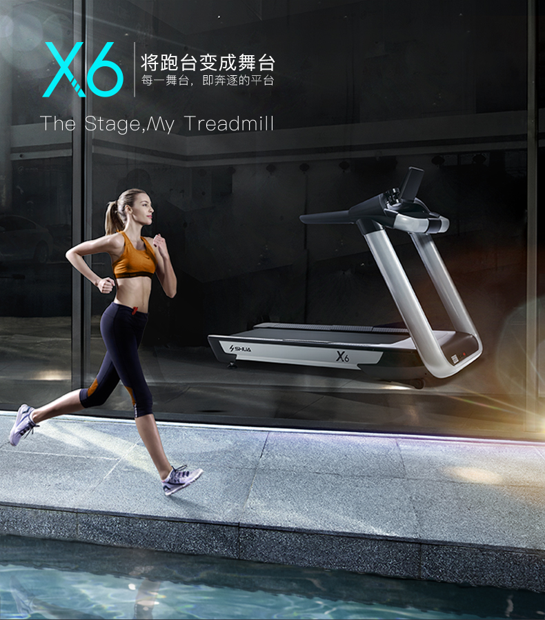 舒华家用跑步机SH-T6700(X6)采用18T+12T双层跑板,T2.2mm钻石纹的跑带,双层跑板全跑台减震,对您跑步中的膝盖进行全方位的呵护,选用接触式心率感应和无线心率感应等多种方式获取数据,跑步面积达520×1450mm,可承受130kg的使用者使用。
